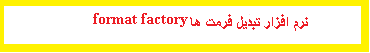 نرم افزار format factoryنرم افزاری جالب و کار آمد برا تبدیل فرمت های مختلف (آهنگ وفیلم وعکس و...)وشما با استفاده از این نرم افزار به راحتی میتوانید تبدیل فرمت را انجام دهید.